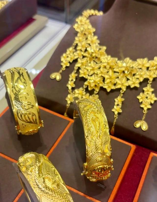 他和一旁的店员打趣道,"要是我按现价卖回给你们,你们收不收?"店员回复称,"收的,现在买黄金的人还是挺多的,而且最近大盘(指国际金价)好像也涨了不少。前两天有个外地来的客人一口气买了我们的结婚四件套(黄金戒指、耳环、项链、手链)花了 3 万多元,大家可能都觉得黄金价格还是比较保值的,一直在涨。"