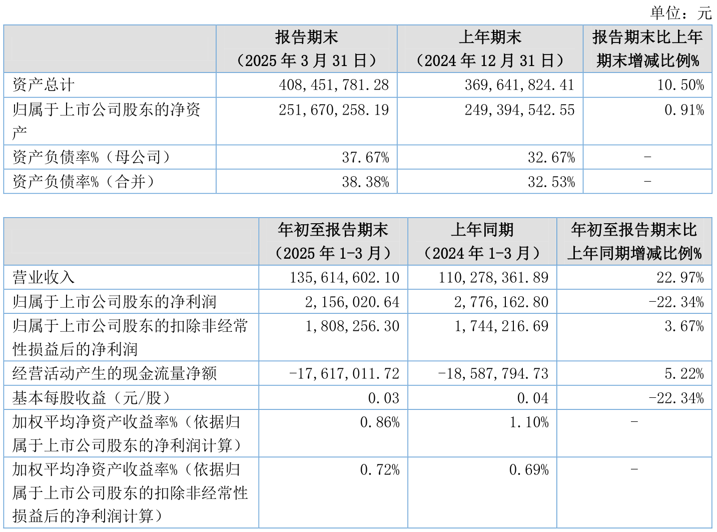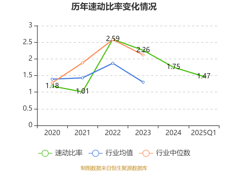 2025年第一季度,公司流动比率为2.22,速动比率为1.47。
