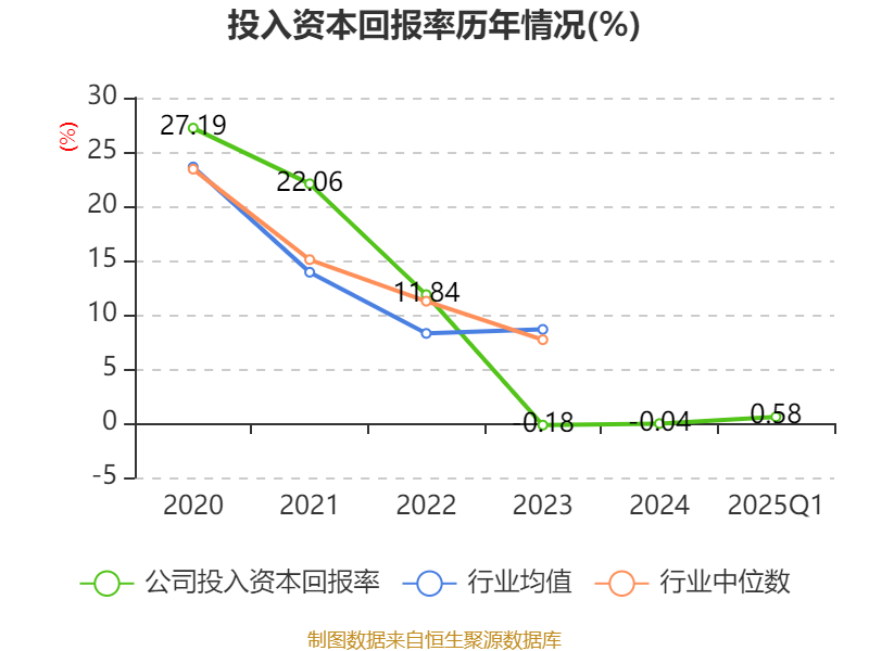 盈利能力方面, 2025年一季度公司加权平均净资产收益率为0.86%,同比下降0.24个百分点。公司2025年第一季度投入资本回报率为0.58%,较上年同期下降0.06个百分点。