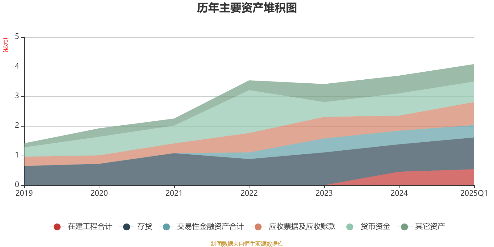 资产重大变化方面,截至2025年一季度末,公司应收票据及应收账款较上年末增加52.84%,占公司总资产比重上升5.26个百分点;货币资金较上年末减少8.11%,占公司总资产比重下降3.43个百分点;交易性金融资产合计较上年末减少9.04%,占公司总资产比重下降2.19个百分点;预付款项较上年末减少40.74%,占公司总资产比重下降1.39个百分点。
