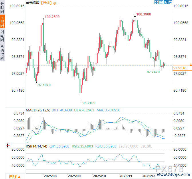 (美元指数日线图,来源:易汇通)北京时间10:16,美元指数现报97.98。