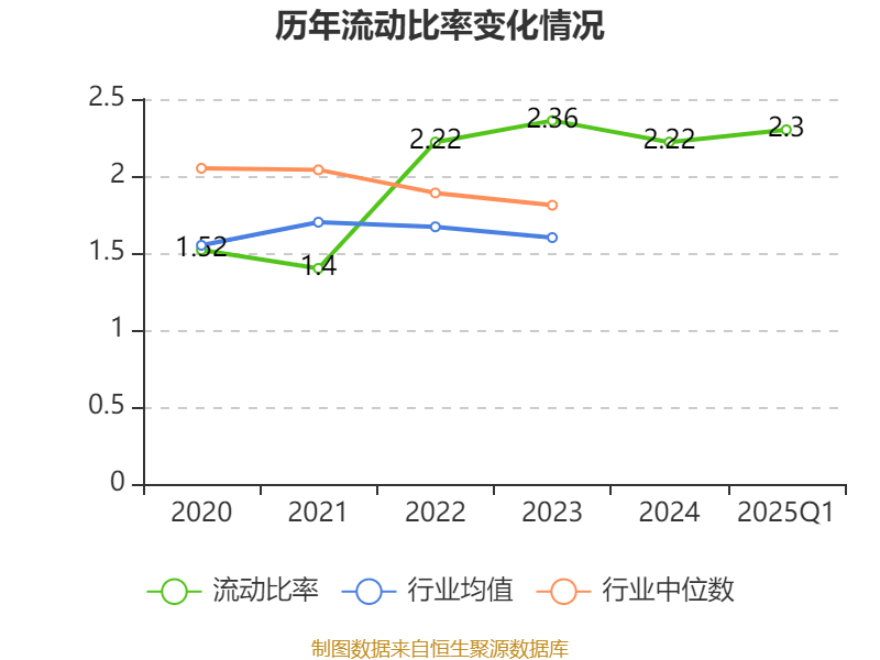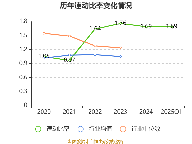 2025年第一季度,公司流动比率为2.3,速动比率为1.69。