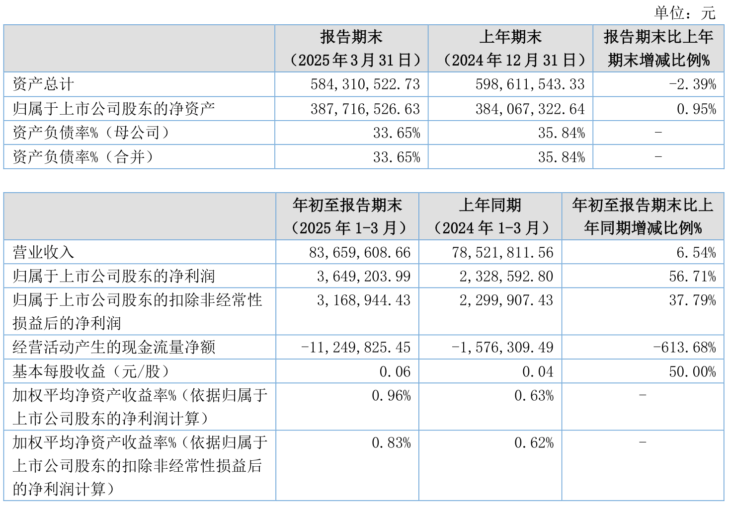 掌尚策 夜光明:2025年一季度净利润364.92万元 同比增长56.71%