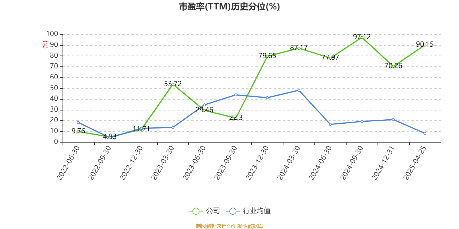 市盈率、市净率为负时掌尚策,不显示当期分位数,会导致折线图中断。